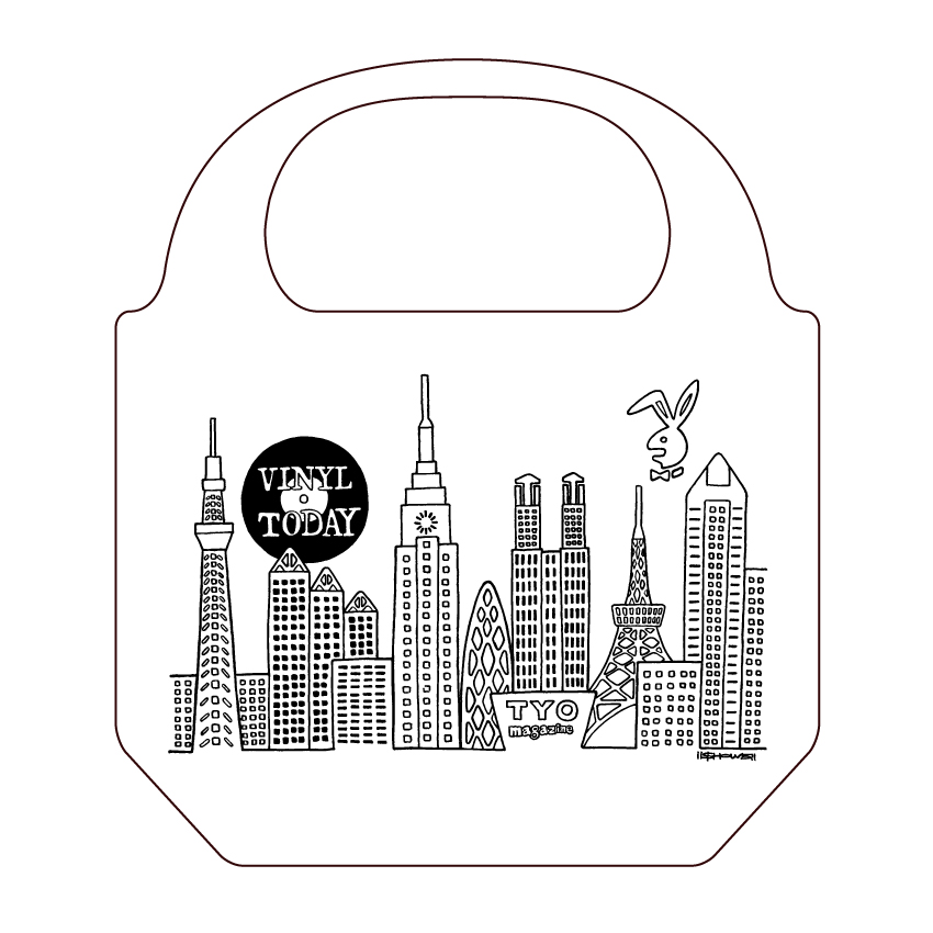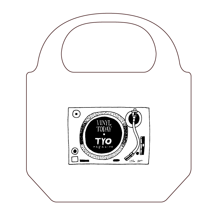 人気イラストレーターがデザインしたタイベック素材のマルシェトートバッグ、もちろんレコードが入るサイズ、しかも2種類、限定80枚を会場でのみ販売します。TYO magazineとVINYL TODAYのロゴ入り!